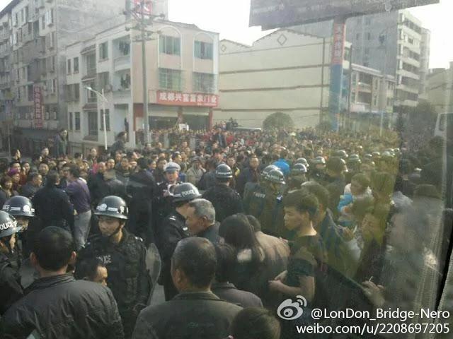 当地警方验尸后认定,该男子死于自杀。死者家属认为怀疑公安收受贿赂后包庇兇手才拒绝立案,遂堵路喊冤。上月26日、27日,家属亲友连续两天堵塞212国道示威,又到定水镇派出所顶楼旁放置花圈表示抗议。网传米的家人与警方发生冲突,引发多达千人参与围观、示威。
