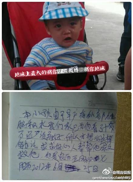 在婴儿身旁旅行包里面全是奶粉、衣服、被子之类的物品,在包裹婴儿的被子里警察找到了一张字条,字条上歪歪扭扭地写着,孩子是2012年12月出生的,因为孩子患有先天性心脏病和脑损,没钱治疗,希望儿童福利院可以救救孩子,字条上还留着孩子的出生年月,但没有孩子的名字和家人的联系方式。