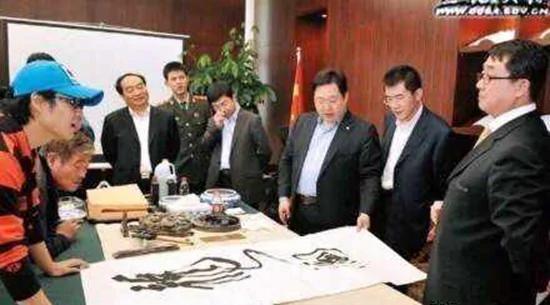 徐明(右三)“欣赏”王立军(右一)书法