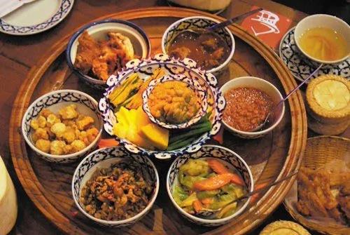 清迈传统的帝王餐(Khantok),又名康马餐,据说是古时王室的吃法。在进餐时不设餐桌,只有矮小的圆桌,食客需脱鞋盘膝席地而坐。菜式以传统的糯米饭、咖喱、炸鸡、炸猪皮和野菜等,完全没有想象中奢华,看来当年的王公贵族作风也甚为简朴。用餐时还有秀色可餐的清迈姑娘在台上以舞蹈的方式展现泰王国的古老传说。对泰国古代文化有兴趣的朋友可以踊跃尝试。