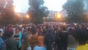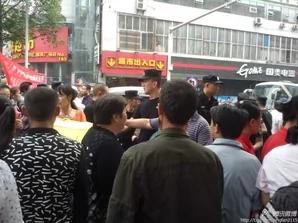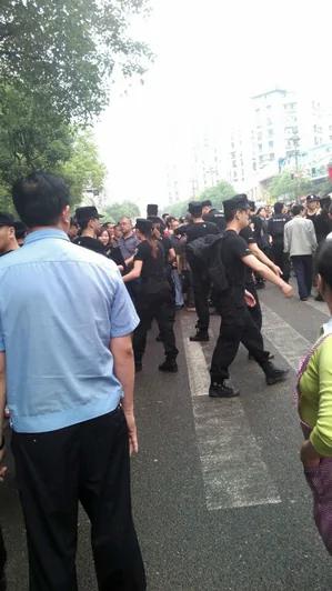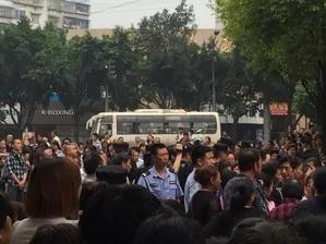 从现场的图片可以看到,马路上人山人海,现场拉起的横幅写着:“天怒人怨,世纪华庭一妇女惨死家中;无人问津,世态炎凉群怒讨人间公道”,交通被瘫痪,抗议一直持续到晚上,大批特警在现场戒备。