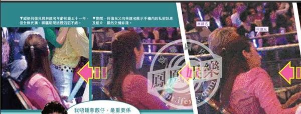 及后,当场馆灯光转暗之时,何傲儿与林建名立即放下戒备,在幽暗的环境下,两人不时贴头依偎,黏身喁喁细语,宛若情侣般如胶似漆。跟着,何傲儿更向林建名分享手机内的私密讯息及照片,再度显示两人情非泛泛。有美女相伴的林建名,亦全程显得很满足,既欣赏80年代红歌手的名曲,又偶尔望向身旁这位美貌80后,享尽视听之娱。