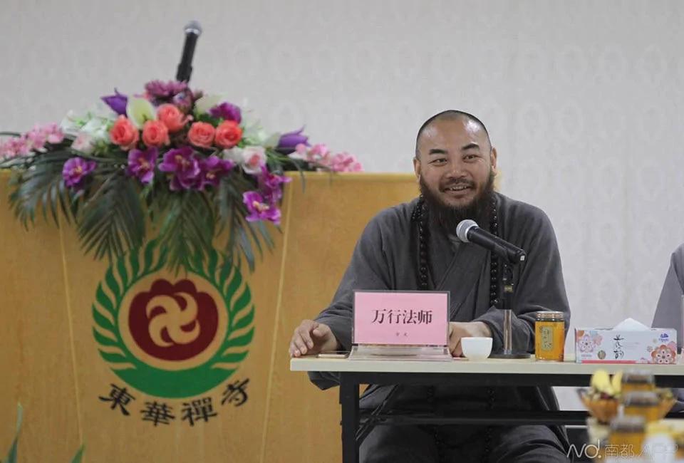 笔试结束后,知客广融法师将带面试者导览东华禅寺,并体验打坐禅修。面试者将要根据这些体验,以及对东华禅寺的感悟创作作品。“赶上好时代!”东华禅寺方丈万行法师今早在面试会启动前接受南都专访时重复3次这句话。对于招聘爆红,万行表示完全没有想到。他自己也玩微博、微信,每天吃完早饭就看上半个小时微信。图为招聘会现场,东华禅寺方丈万行法师正在面试会上致辞。