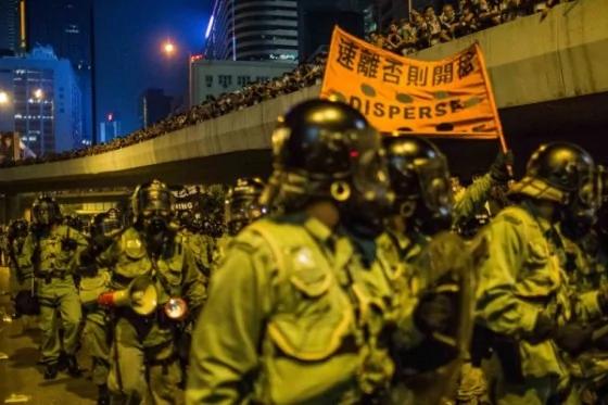 9月28日,梁振英当天部署了真枪实弹的防暴队到场,准备开枪镇压。(Bill/..;