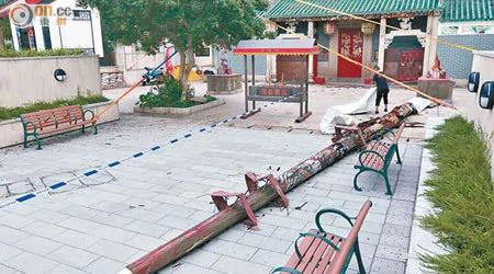 被称为定海神针的鸭脷洲洪圣古庙龙柱倒下(网络图片)