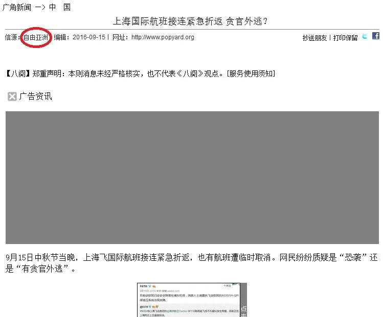 本文版权归阿波罗网所有,转载请注明出处。八阕广角新闻转载本文,却将来源写成“自由亚洲”,请更正。截图如下: