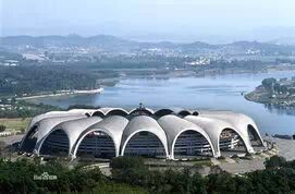 朝鲜绫罗五一体育场可以容纳15万观众。这个场馆所举办的最重要的活动,就是“阿里郎”大型团体操表演,这个由10万人参与的大型表演创造了人类之最。