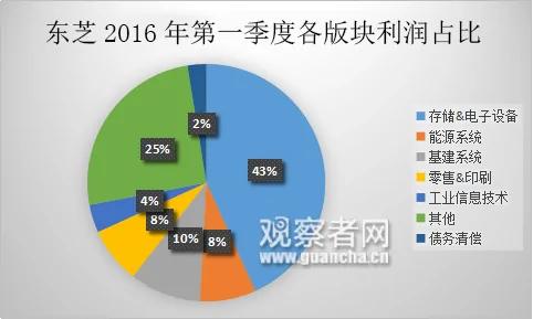 半导体已经是东芝最后一根救命稻草,此举无疑是剜心自救。笔者查阅东芝2016年1季度财报,芯片业务部门的净营收占总营收的30.8%。但运营利润芯片业务部门占据绝对优势,运营利润达到241亿日元,而整个东芝的综合业务利润才201亿日元(因为其他业务部门盈利基本都在亏损)。