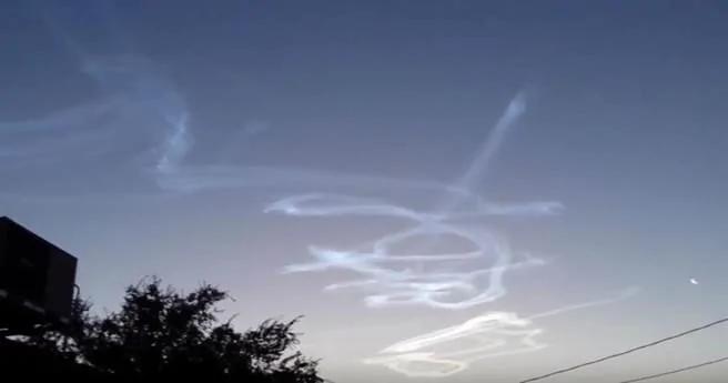 而在天亮后,民眾更在慢慢染白的天空中发现不可思议的画面,彷佛有人在天空鬼画符般,上空出现了气流「打结」的现象,更为事件增添神秘色彩。