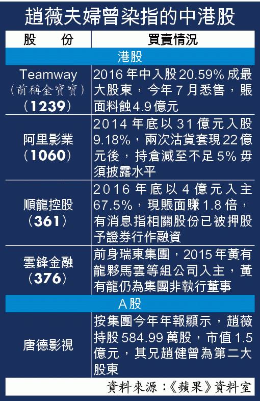 赵薇夫妇在2016年12月,通过龙薇传媒收购万家文化29%股权,作价30.6亿元。其中赵薇夫妇只出资6,000万元,其余30亿来自融资,其中15亿元向明天系掌门人肖建华旗下银必信资产管理借款,另外15亿则拟向银行借贷,即赵薇在该宗收购案中,槓桿倍数达51倍。
