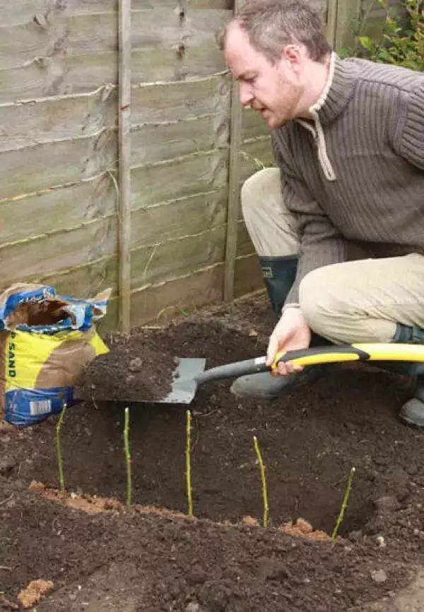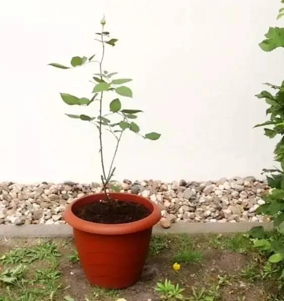 最后放进泥土,脚踩一下泥土,玫瑰花杆露出一些;