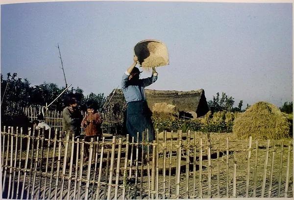 一位老妇人正在晒谷(艾伦·拉森摄)