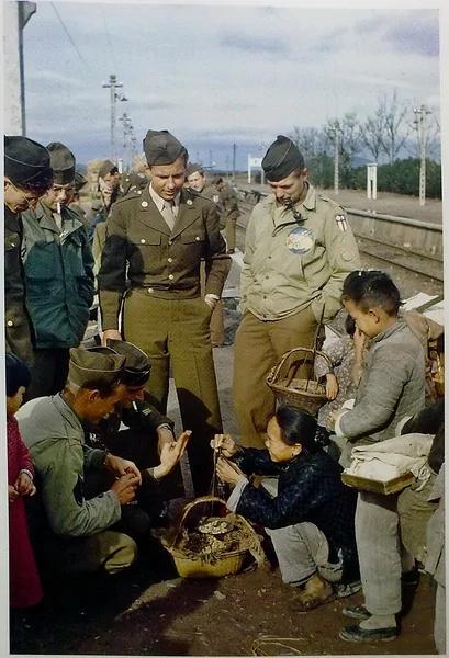 穿越田野和村庄的旅途也非常有趣,对大多数人来说,这是我们第一次在中国乘坐火车。在行进途中,我们看到仍然照常运作的日军基地,这着实让我们感到意外。此时距日本投降已经过去6周了。后来我们才知道,因为战争中占领这些地区的日军数量太多,短时间内中国军队还无法完全解除他们的武装。(威廉·迪柏摄)