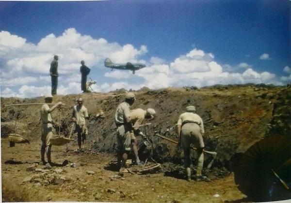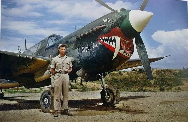 拍摄背景:1944年9月1日,艾伦拉森随第35照相侦查中队从印度来到同盟国中华民国,他得知中队被派往第14航空队——由陈纳德将军领导的、赫赫有名的“飞虎队”。一抵达昆明空军基地,艾伦就和他的一位战友一块儿到飞机跑道上,他们站在一架鼻翼上绘着鲨鱼图案的P40战斗机旁相互拍照,那是多么令人兴奋的时刻啊!(约翰·弗洛曼摄)