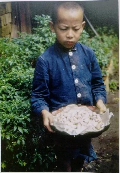手捧蚕茧的男孩(威廉·迪柏摄)