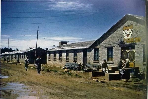 美军营房外,晾晒的衣服和休息的士兵(威廉·迪柏摄)