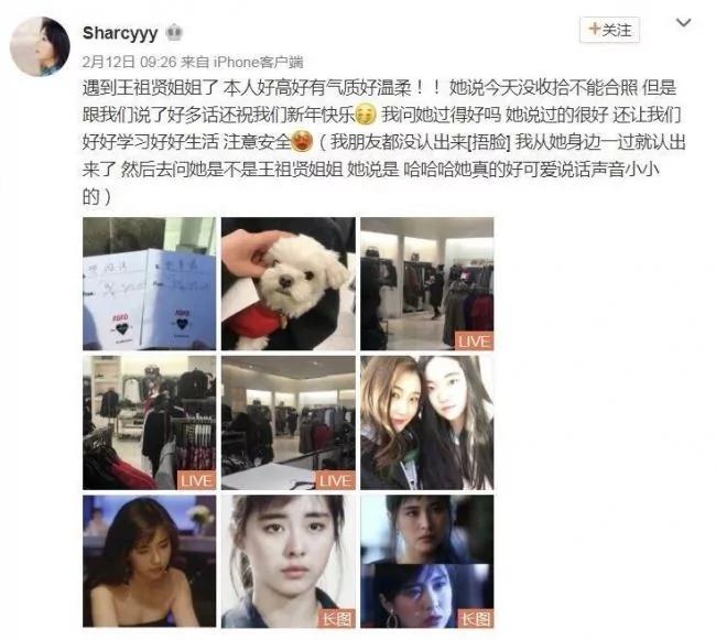 这位网友写道:“遇到王祖贤姐姐了,本人好高好有气质好温柔!她说今天没收拾不能合照,但是跟我们说了好多话,还祝我们新年快乐。我问她过得好吗?她说过的很好,还让我们好好学习好好生活,注意安全(我朋友都没认出来,我从她身边一过就认出来了,然后去问她是不是王祖贤姐姐,她说是,哈哈哈她真的好可爱说话声音小小的)。”