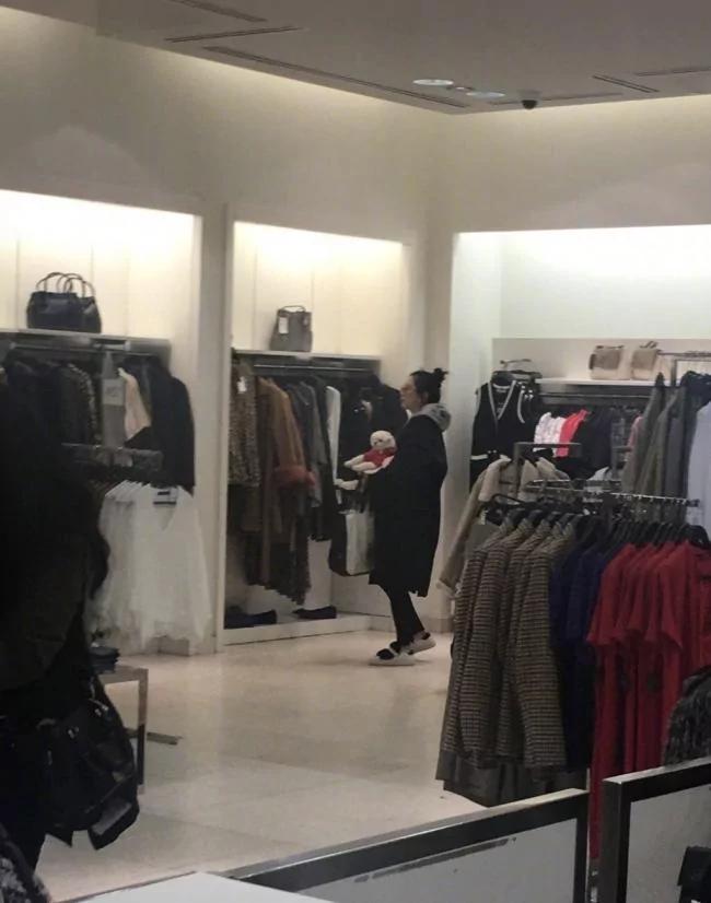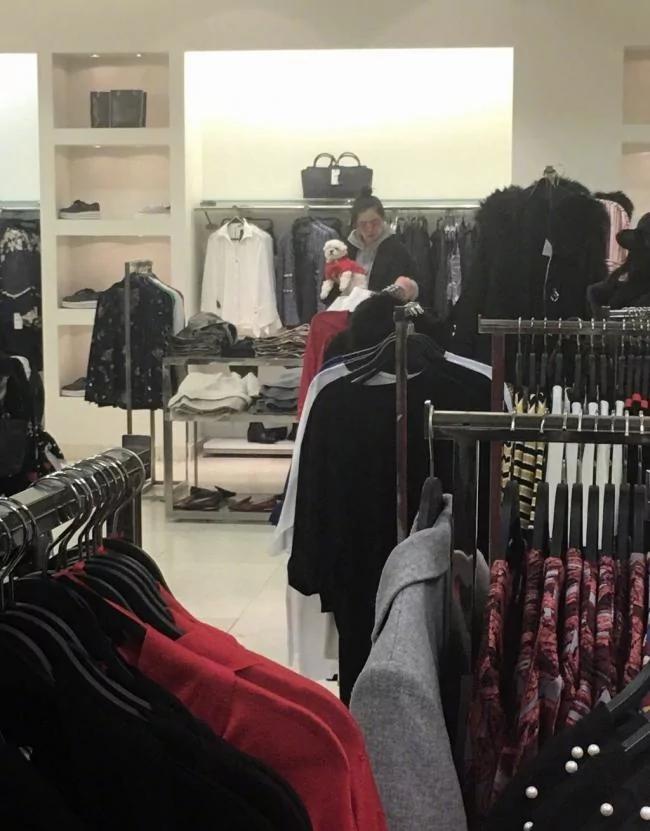 照片上可见王祖贤扎着丸子头戴一副眼镜,怀里抱着一只小狗狗,一身黑衣显得格外有气质,她一个人在一家服装店闲逛,马上就要过年了,想必是出门买衣服。