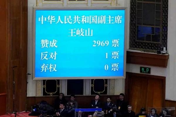 3月17日9时,中共第十三届人大第五次全体会议,习*近*平全票当选国家主席、国家军委主席,栗战书全票当选人大常委会委员长,王岐山当选国家副主席,但有1人投反对票。