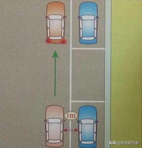 (1)顺着车位的方向,保持与前车车身大约1m的距离,将车开至与前车对齐平行的位置,然后停下。