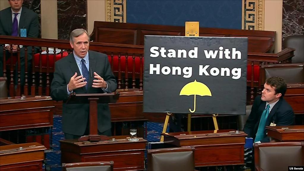 2019年11月19日在参议院全院即将无异议通过《香港人权与民主法案》之际,俄勒冈州民主党联邦参议员默克里(Jeff Merkley)在院会发表演说。