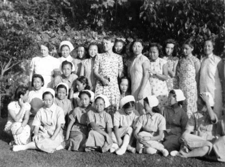 图:跟史沫特莱(站在中间的洋人)学舞的延安女士们