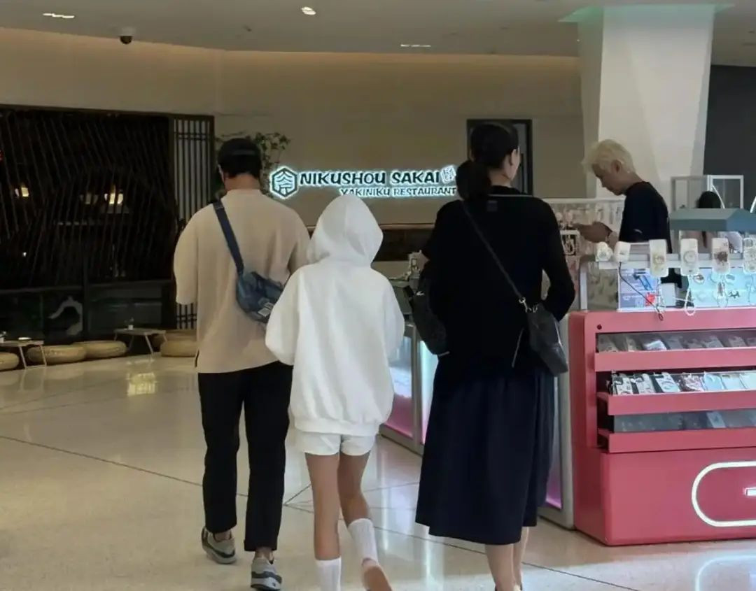 12岁的女儿吴斐然继承了父母的优秀基因,穿着白色的连衣帽搭配白色短裤,算是典型欧美青少年的休闲打扮。