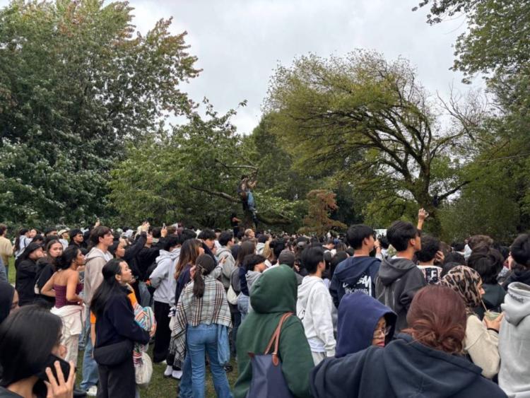 尽管周二傍晚的天气并不好,但依然没有浇熄粉丝的热情,就在西泽贴文出现不久后,鳟鱼湖周围的街道很快就拥挤不堪,年轻人蜂拥而至。警察迅速设置了路障,交通完全瘫痪。
