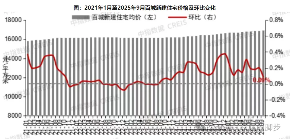 9月百城新建住宅均价为16926元/平米,环比微涨0.09%,同比上涨2.68%。三季度,百城新建住宅价格累计上涨0.47%。前三季度,百城新建住宅价格累计上涨1.63%。
