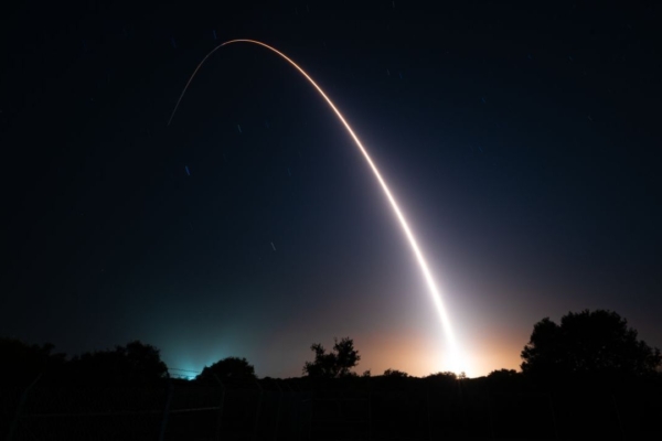 2025年5月21日,一枚未携带武器的“民兵III型洲际弹道导弹”(Minuteman III Intercontinental Ballistic Missile)在加州范登堡太空基地(Vandenberg Space Force Base)进行作战测试时发射。(美国空军)