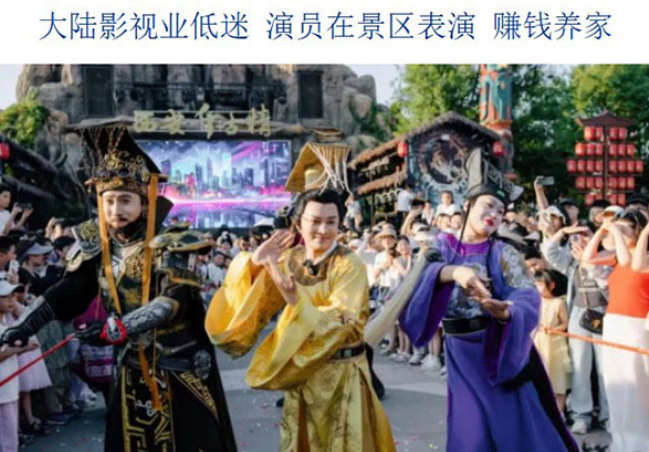 dajiyuan:【大陆影视业低迷演员在景区表演赚钱养家】影视寒冬延烧,中国大陆越来越多演员被迫转行——有人送外卖、有人在景区重演旧角。郑国霖顶高温扮李世民,马景涛因连演晕倒,曾经的主角,如今只为养家。