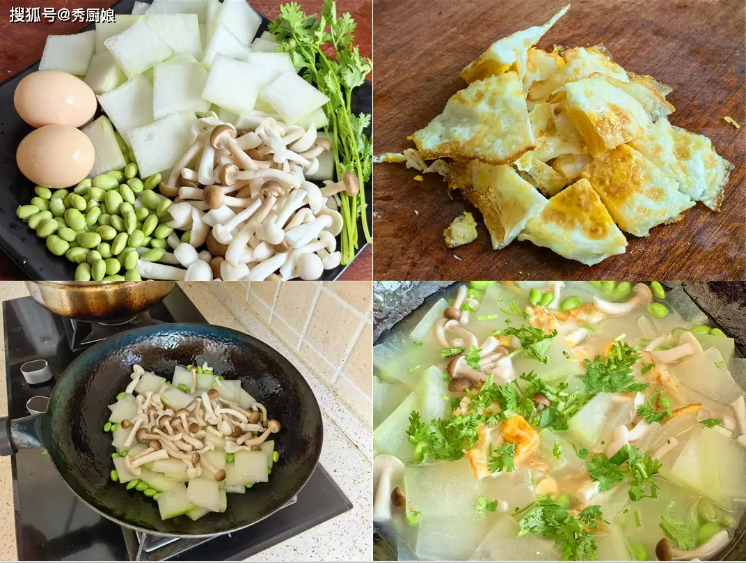 推荐食谱:冬瓜毛豆菌菇煎蛋汤