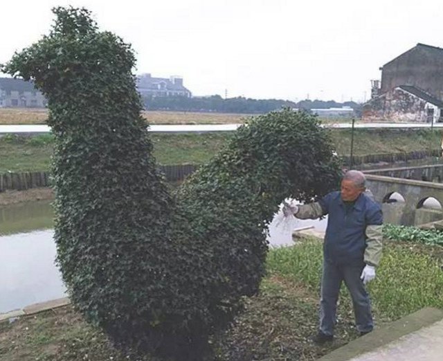 江苏省有位老人叫王根良,今年78岁,家住祝塘镇北山头自然村。王大爷介绍,上世纪七十年代末,朋友在山上挖到了一棵枸骨,就送给了酷爱养花种草的他。当时这棵枸骨的根仅有二三公分,还是个小不点。40年来,王大爷慢慢养着,还将它弄成一只公鸡造型,“现在,我每年都要修整两三次,否则的话就不好看。”