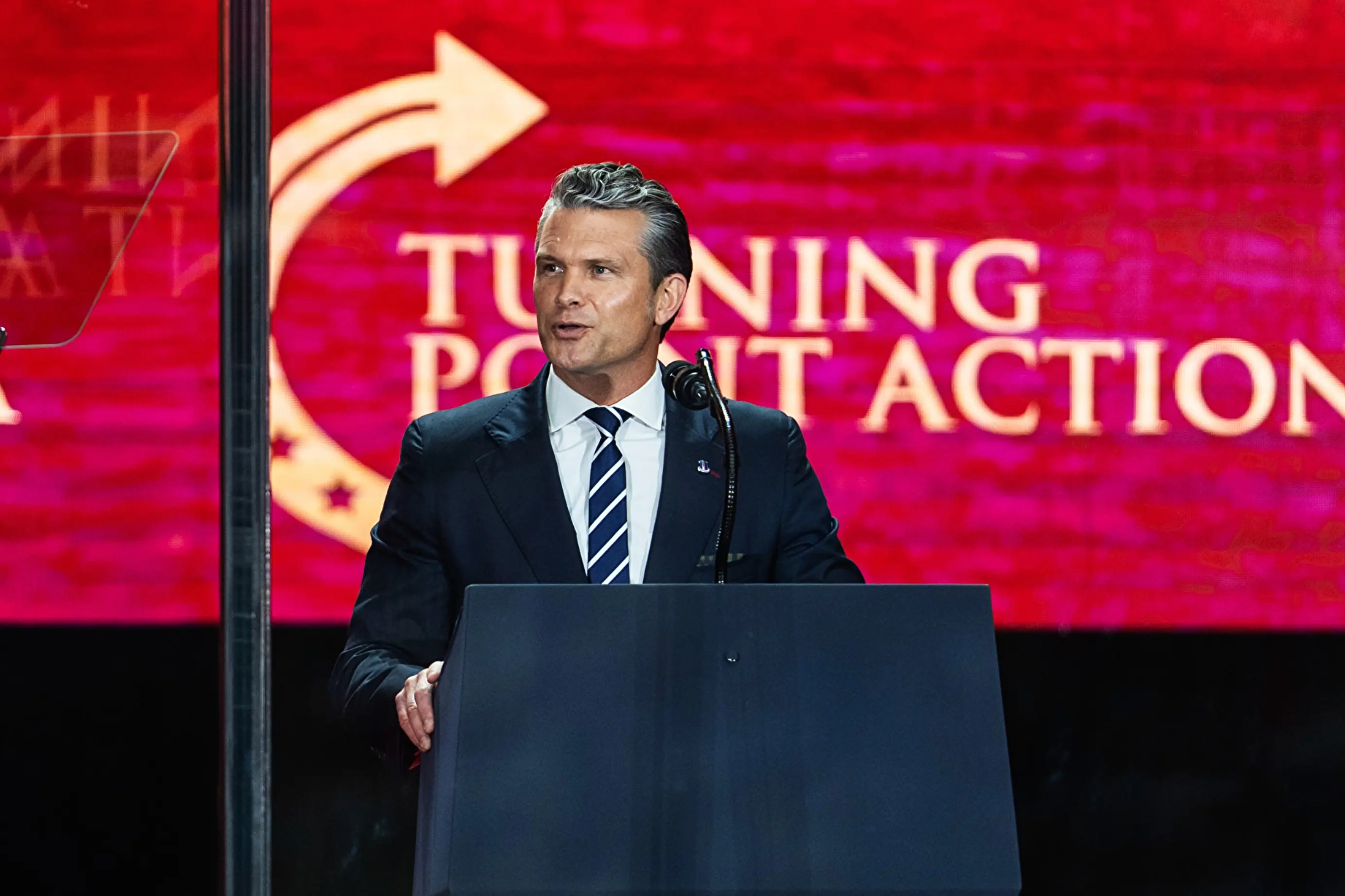 2025年10月3日,美国战争部长海格塞斯宣布,美军在委内瑞拉附近打击一艘贩毒船,击毙四名毒贩。图为2025年9月21日,海格塞斯在美国知名保守派人士柯克的追思会上讲话。(Madalina Kilroy/大.纪.元;)