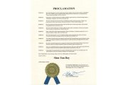 8月4日,美国印第安纳州布卢明顿市市长凯瑞‧汤姆森(Kerry Thomson)褒奖神韵艺术团,并宣布2025年8月16日为布卢明顿市“神韵日”。
