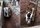 有记者追问:这辆“萝卜快跑”是不是撞到围挡坠落深坑的?店老板回答:“这就不知道了,围挡是有的,怎么掉下去的就不知道了。这个原因要问‘萝卜快跑’。”