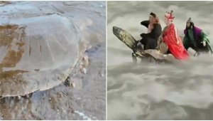 - 罕见!西游记中“通天河神兽”现身 ?广东渔民捕获 有1.75亿年历史(图)