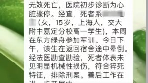 - 气温近40℃ 上海交大附中女生军训猝死 官方压舆论(图)